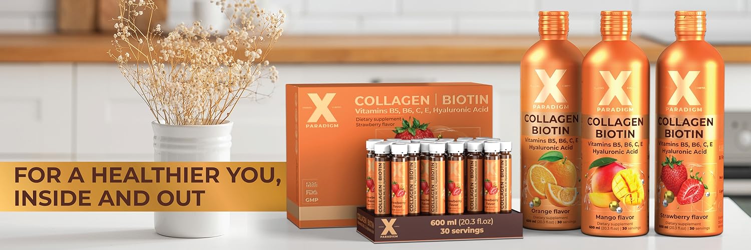 XParadigm Puritas Corpus Liquid Collagen Peptides with Biotin & Hyaluronic Acid - Hydrolyzed Bovine Collagen Type 1 and 3, Biotin 10000mcg, Vitamins B5, B6, C & E - Liquid Collagen for Women & Men